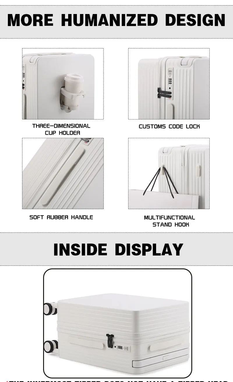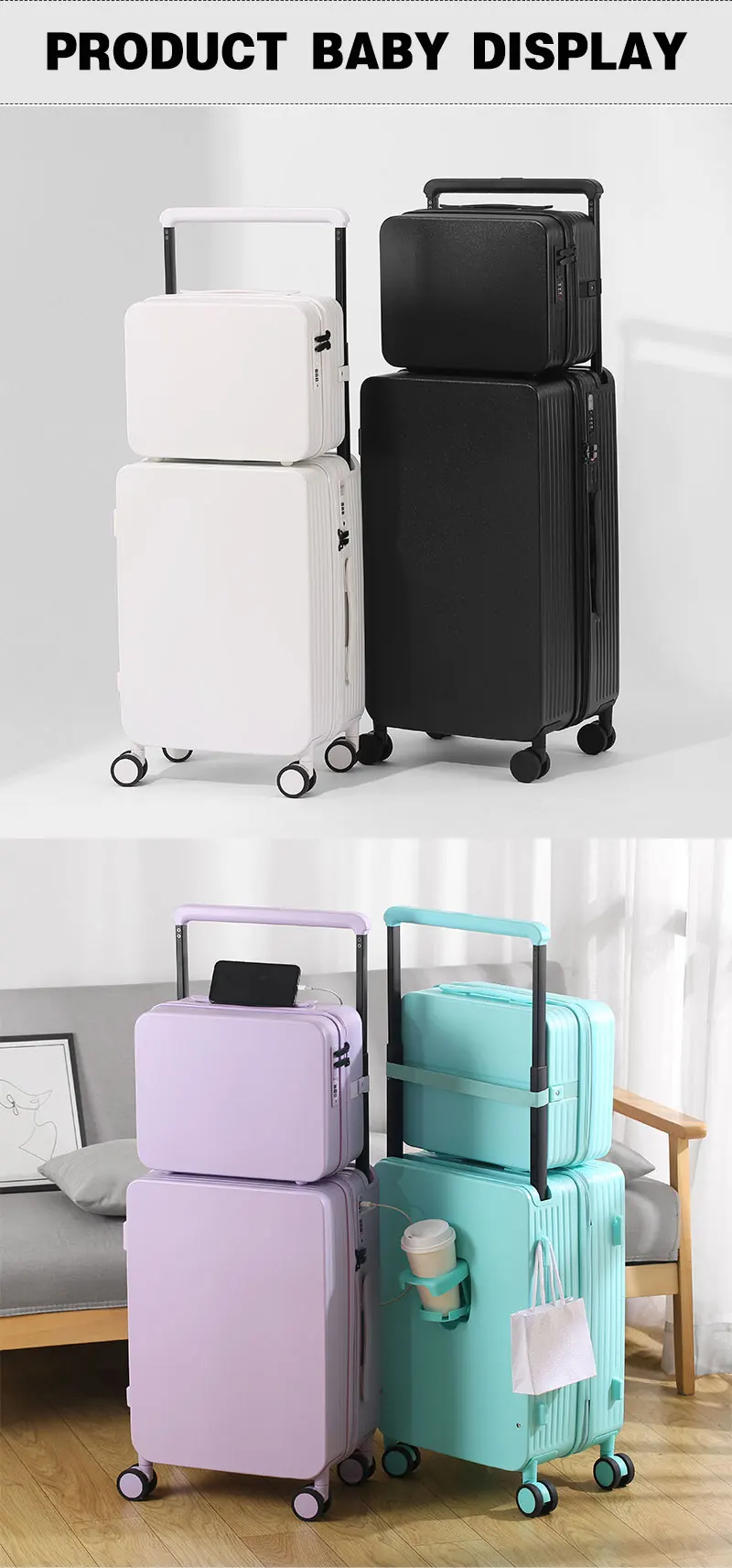 20+14"24+14" Luggage Set with USB & Cup Holder TSA Lock 360° Wheels Side-standing foot hook PC+ABS Suitcase Foldable Travel case