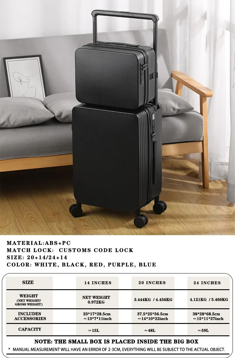 📦 Set specifications: 20-inch boarding case + 14-inch makeup box / 24-inch shipping case + 14-inch makeup box