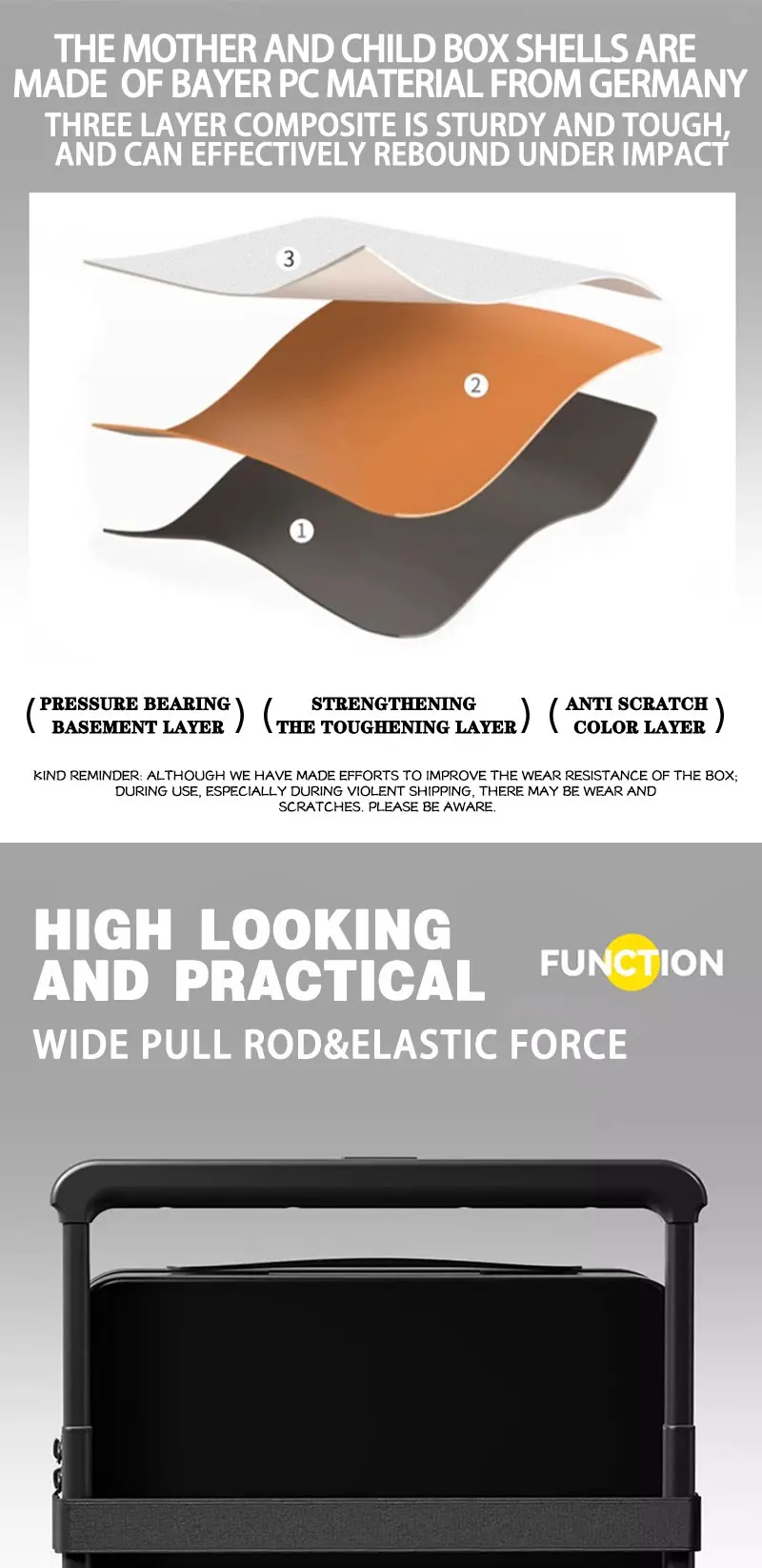 High elastic PC+ABS alloy material, pressure-resistant and wear-resistant, lightweight design reduces burden, bears falls and resists pressure, and is not afraid of bumps on the journey.
