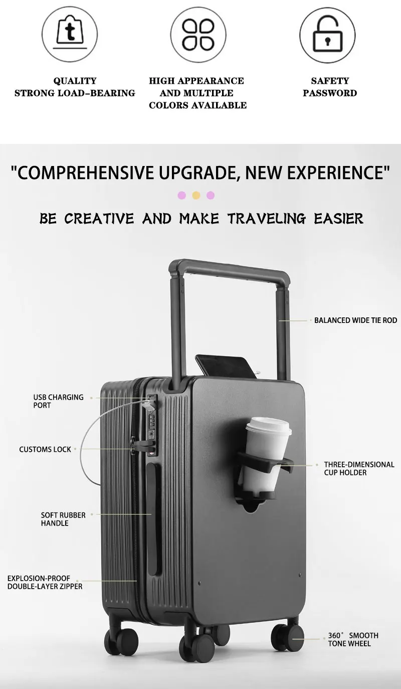 Catch the high-speed rail, wait for boarding, go to the exhibition... unfold the hidden cup holder with one click, and place the coffee and milk tea steadily, and you no longer have to "pull the box with one hand and carry the cup with the other"!
